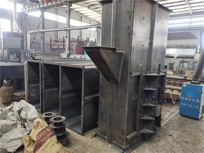 4.鏈條及料斗:鏈條為圓鋼焊接環(huán)鏈。料斗用螺母定在鏈條的接頭上。不同高度的斗提機現(xiàn)套相應數(shù)量的鏈條、接頭、及料斗。